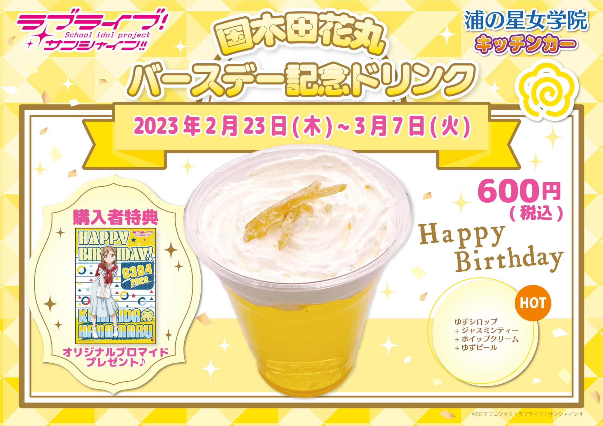 「ラブライブ!サンシャイン!!」関連グッズ(音楽、映像商品、書籍を除く)を、1,000円以上(税込)ご購入いただいた方に、ゲーマーズ沼津店周年記念イラストを使用したご挨拶カードを差し上げます。