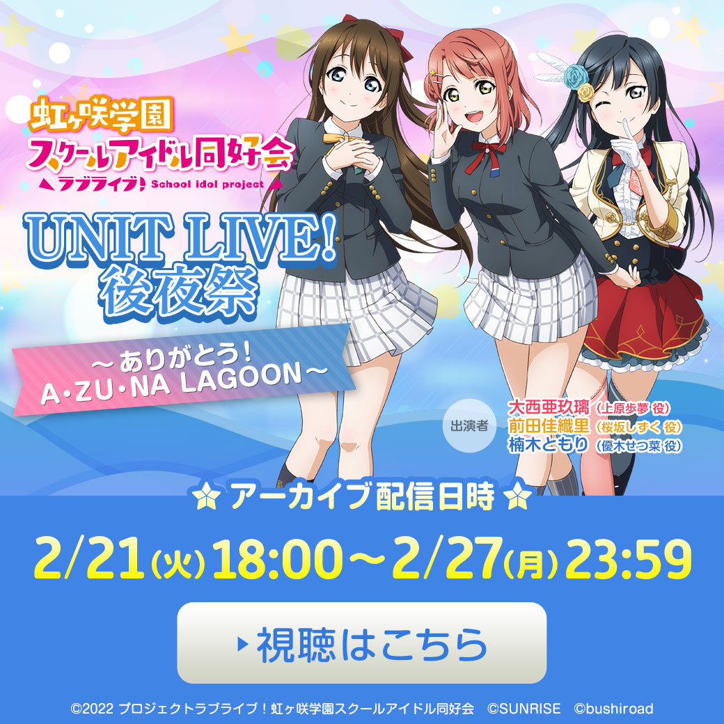 AnimeJapan2023内AJステージにて実施予定のラブライブ!シリーズ合同スペシャルステージが、ラブライブ!シリーズ公式YouTubeチャンネル、ニコニコ生放送にて生配信決定!