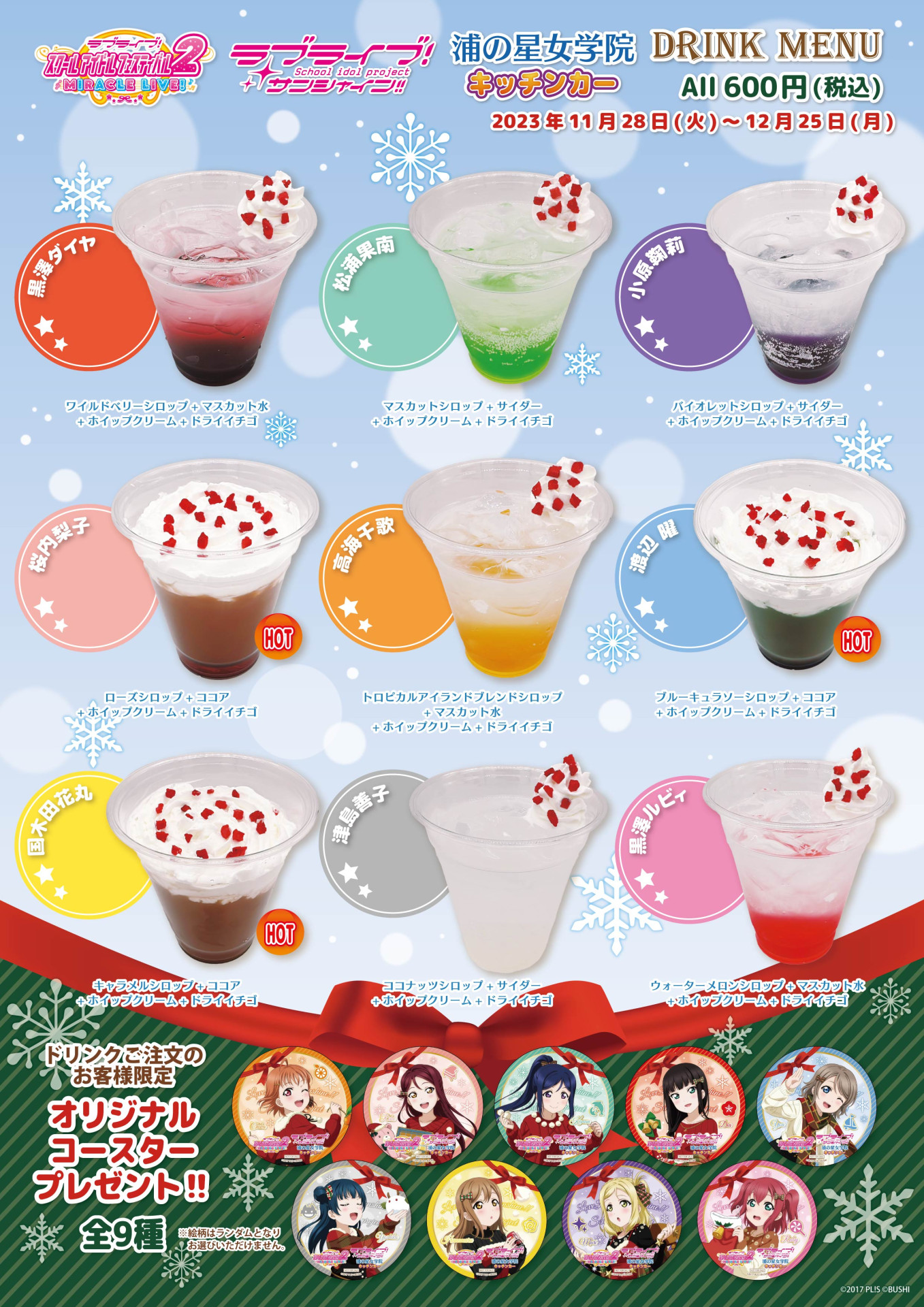 『浦の星女学院キッチンカー』より、通常ドリンク発売のお知らせです!
