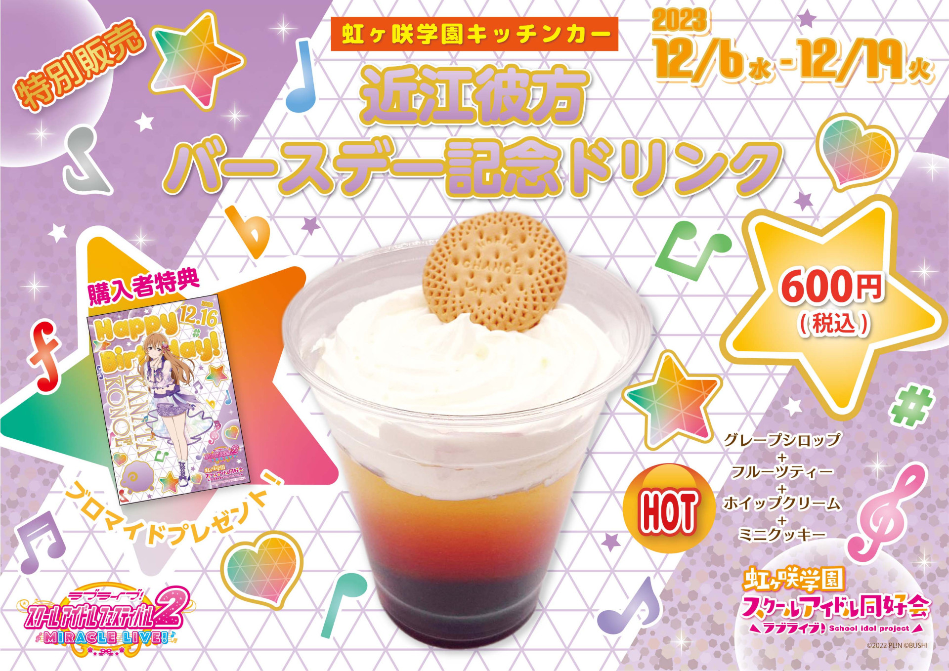 下記期間でバースデー記念ドリンクメニューの販売、記念ドリンク購入者様への特典ブロマイドお渡し、メッセージボードの展示をいたします。