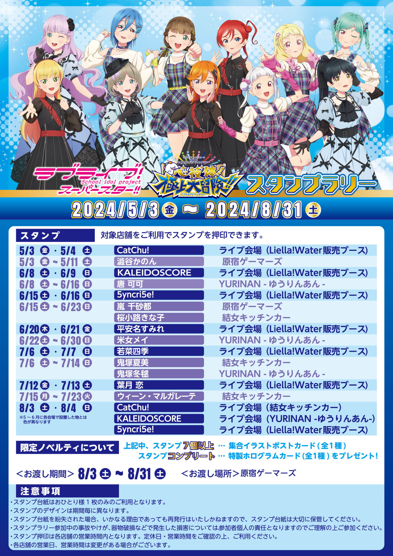 各ライブ会場と原宿を訪れて、限定ノベルティをGETしてくださいね!