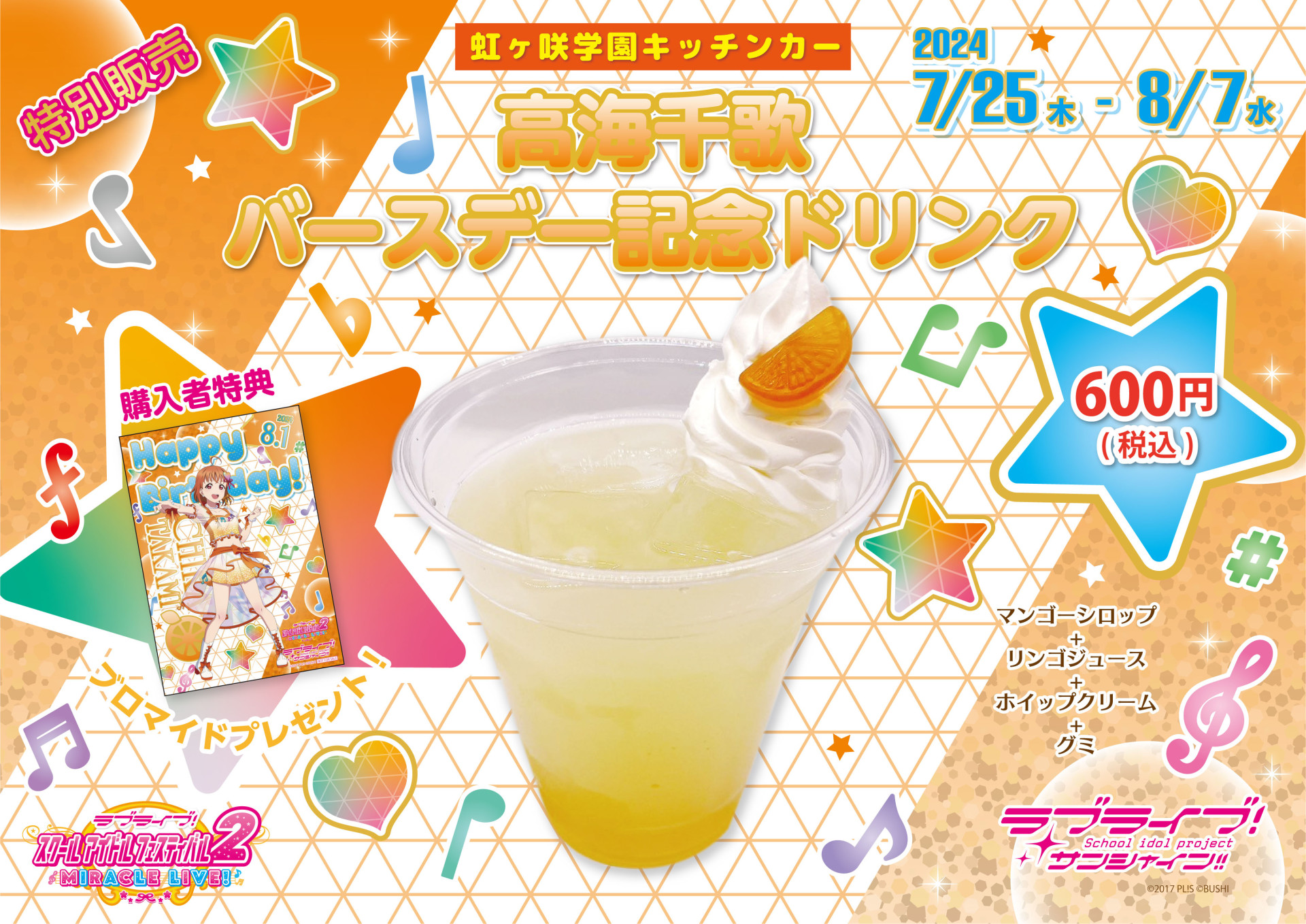 下記期間でバースデー記念ドリンクメニューの販売、記念ドリンク購入者様への特典ブロマイドお渡し、メッセージボードの展示をいたします。