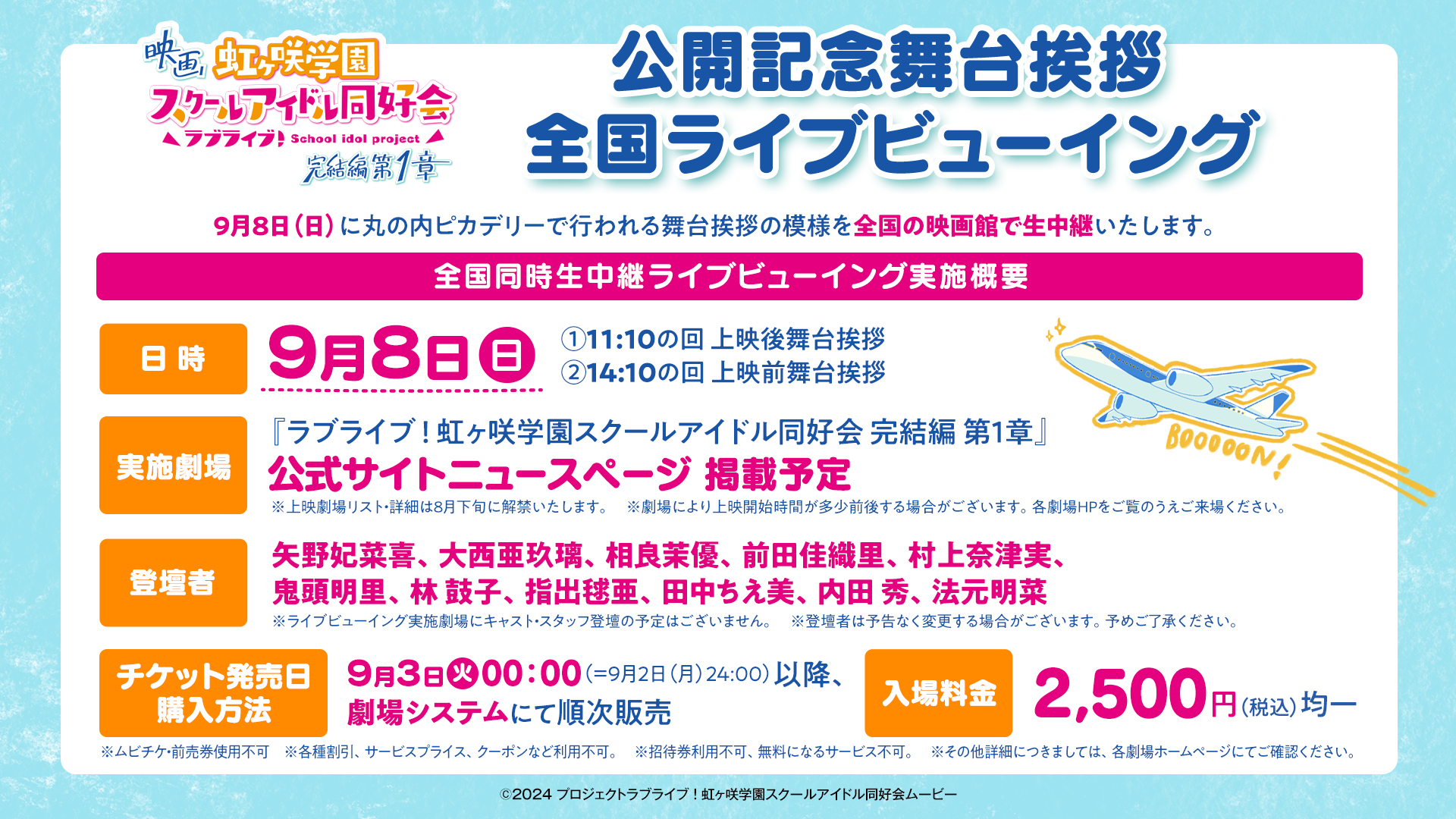 9月8日(日)に丸の内ピカデリーで行われる舞台挨拶の模様を全国の映画館で生中継いたします。