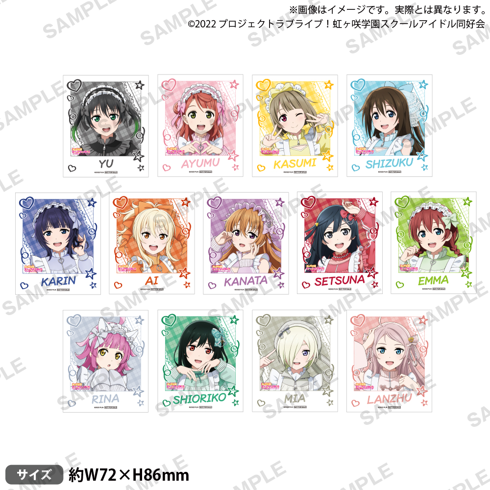 期間中、「ラブライブ!虹ヶ咲学園スクールアイドル同好会」関連のグッズを2,200円(税込)ご購入ごとに【フォト風ミニカード(全13種) 】をランダムで1枚プレゼント!