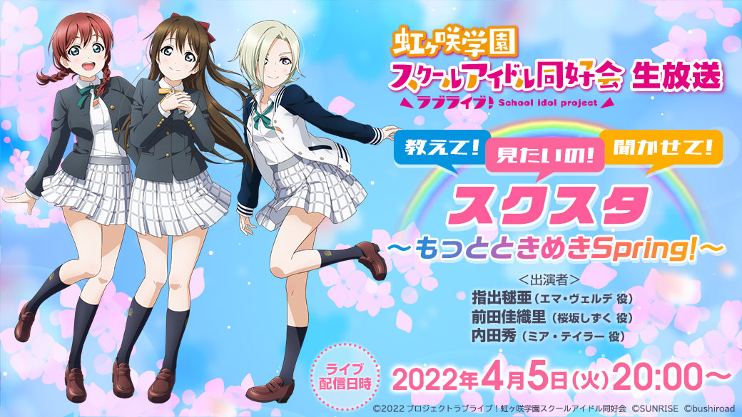 「ラブライブ!虹ヶ咲学園スクールアイドル同好会生放送 教えて!見たいの!聞かせて!スクスタ~もっとときめきSpring!~」のお知らせ